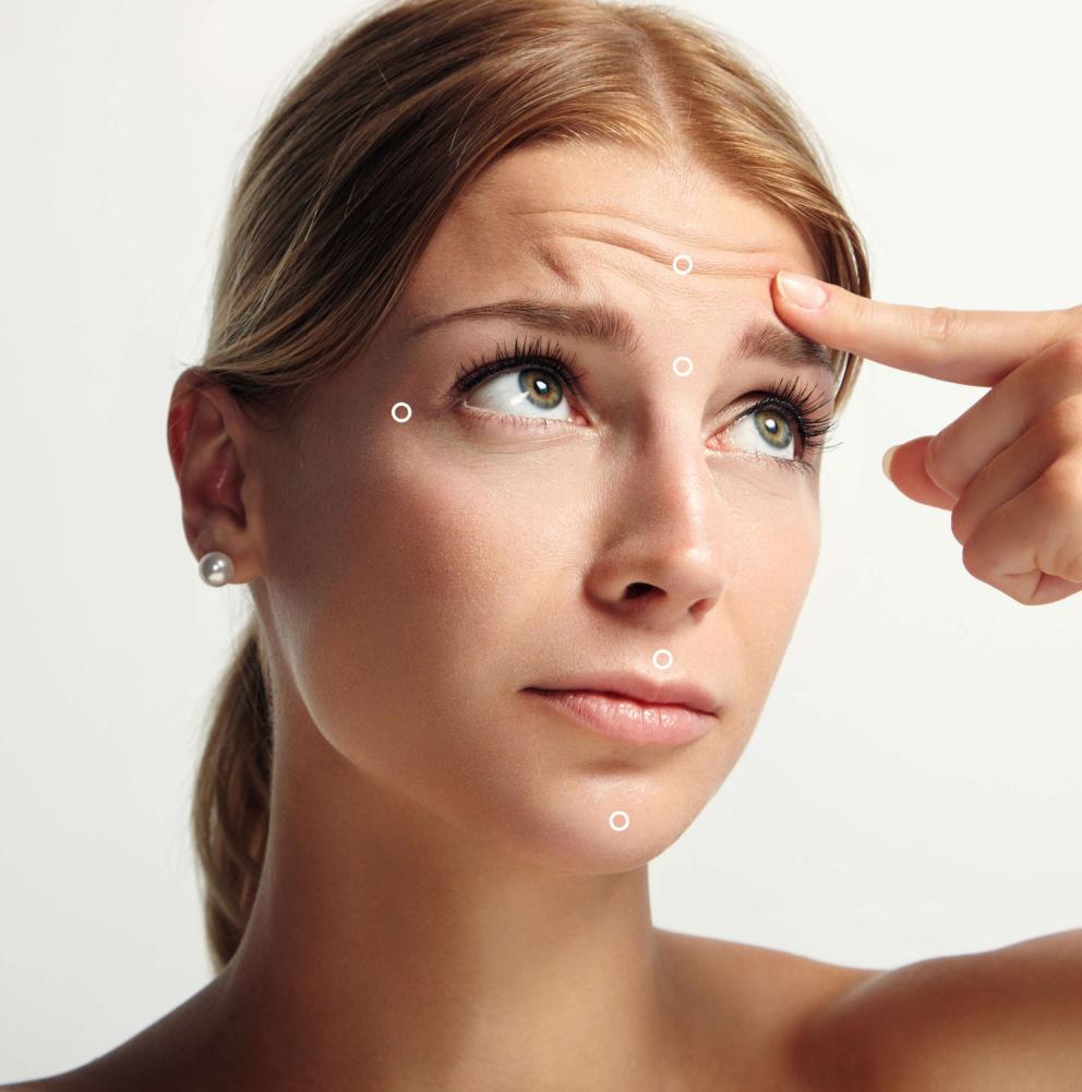 Suaviza as linhas horizontais na testa e as "rugas do bravo" entre as sobrancelhas.